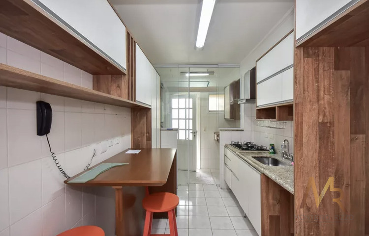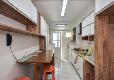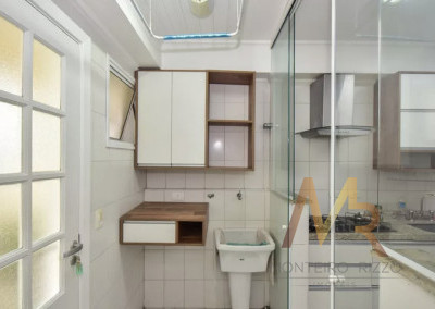 Cozinha completa com armários, integrada à área de serviço funcional.