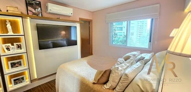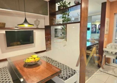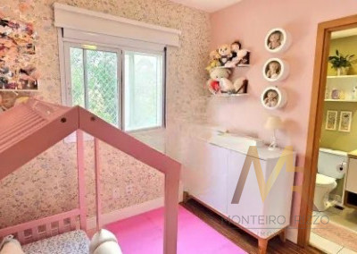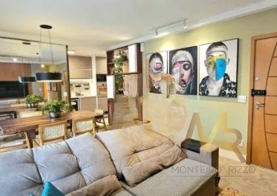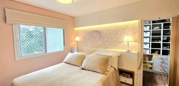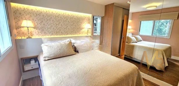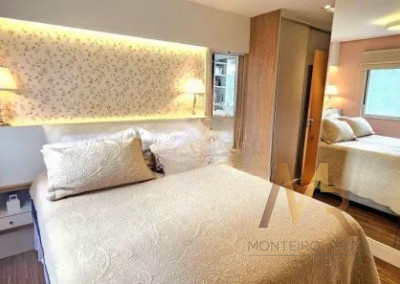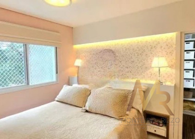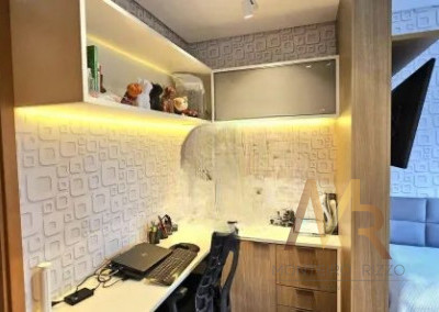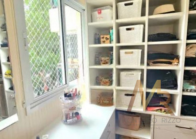 Na área íntima, são 3 suítes, sendo a master um verdadeiro espetáculo: ganhou um closet incrível com o aproveitamento do 4º dormitório que também ampliou a sala, deixando tudo ainda mais amplo e arejado.