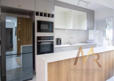 Apartamento semi mobiliado com 65m² com 2 dormitórios sendo uma suíte, com movéis planejados de altíssima qualidade, sala de estar com painel de tv e poltronas, sala de jantar com mesa de jantar, cozinha com movéis planejados com geladeira e torre quente, aquecimento a gás, 1 vaga de garagem com depósito privativo.