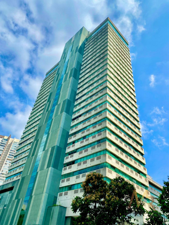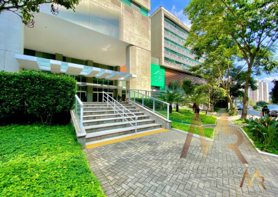 Prédio comercial moderno, recepção 24hs, acesso direto ao mall anexo com praça de alimentação e serviços, ambiente corporativo consolidado