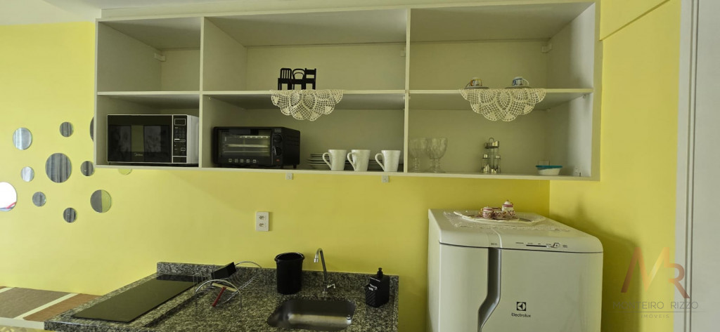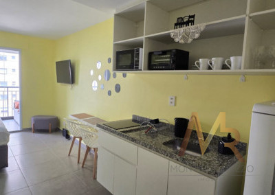 O Studio conta com 30 metros de área construída muito bem distribuída para atender o morador e seus visitantes; temos uma varanda com sofá e cadeiras para curtir a vista, trabalhar, estudar ou simplesmente desfrutar de chá acompanhado de um bom livro, copa completa e mobiliada com todos os utensílios necessários para o dia a dia.