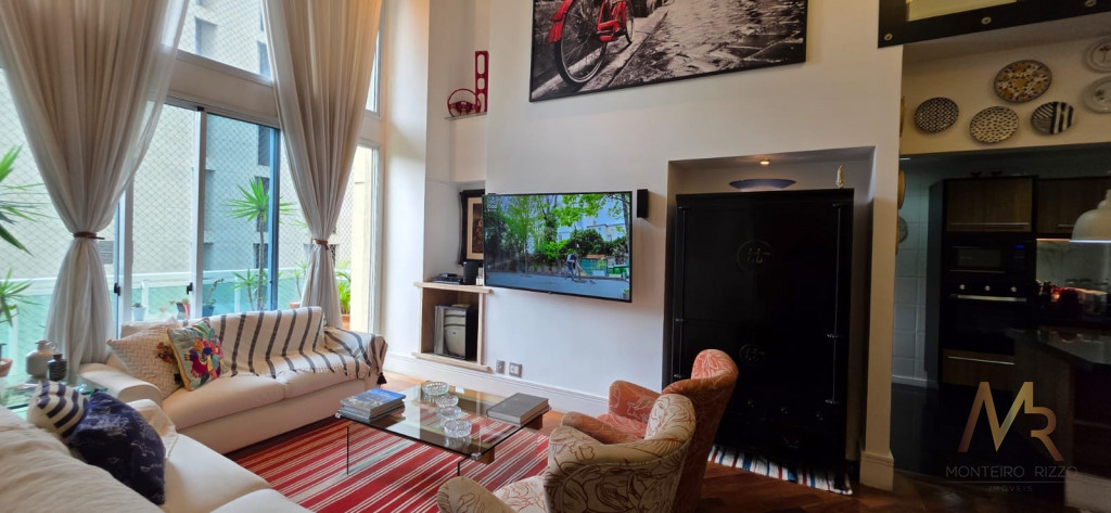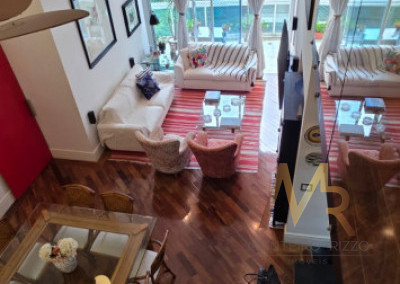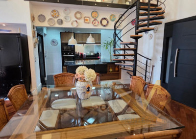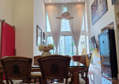 Pé direito duplo, bem iluminado e ventilado, permitindo um lindo mezanino utilizado como home office e sala de TV.