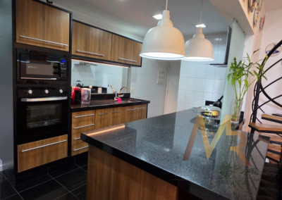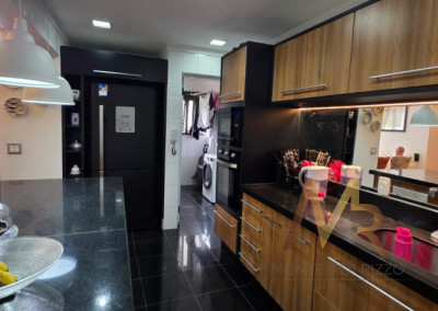 2 vagas de garagem cobertas, Hall privativo, sala de jantar, de estar, ampla cozinha com área de serviço e banheiro de serviço.