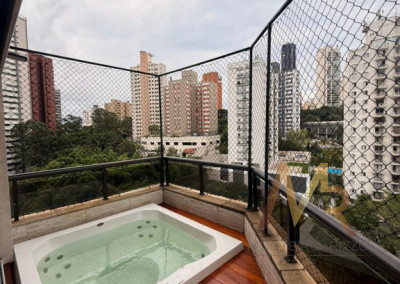 Área de lazer privativa – Varanda principal com jacuzzi e churrasqueira , ideal para receber amigos e criar momentos inesquecíveis.