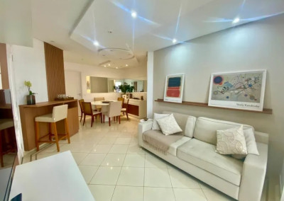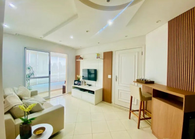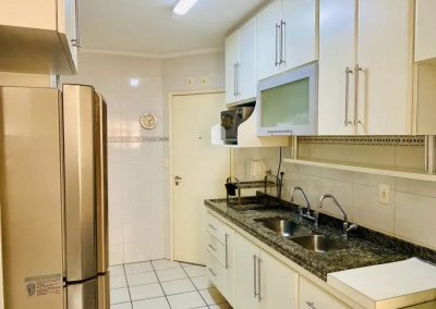 Com 100 m² de área útil, o imóvel oferece um living elegante para dois ambientes, lavabo, 3 dormitórios confortáveis, sendo 1 suíte, todos repletos de armários planejados, com excelente aproveitamento de espaço. A cozinha é funcional, bem ventilada, iluminada e repleta de armários, ideal para quem valoriza praticidade e organização.