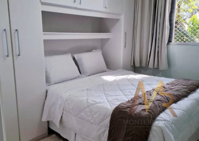 Apartamento repleto de móveis planejados/modulares, contando também com ventilador de teto na suíte, bem arejado e com ótima incidência de luz natural, excelente para morar ou investir!