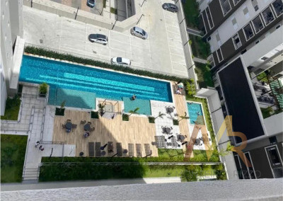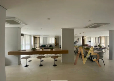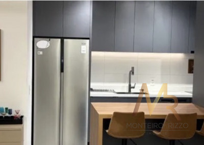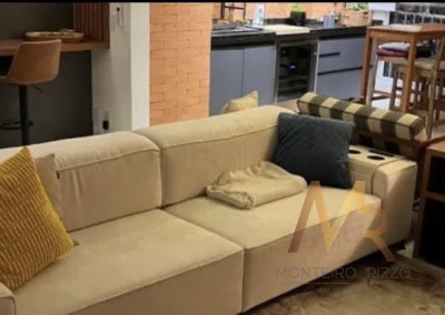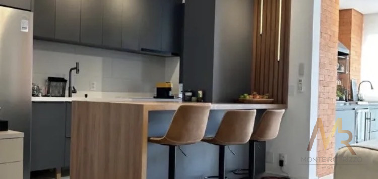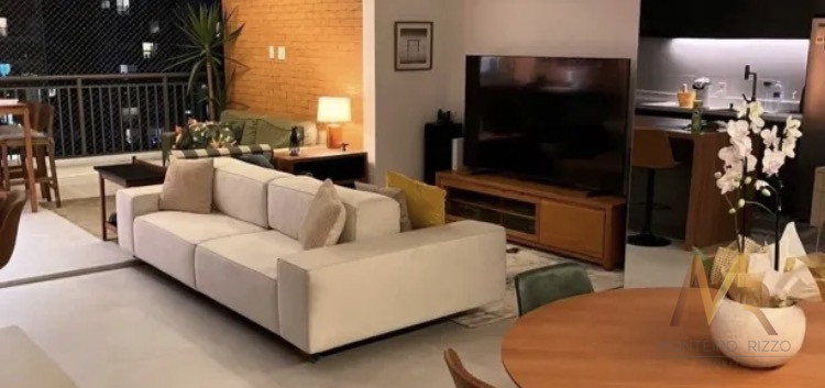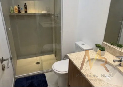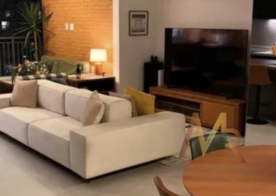 Apartamneto 110m² com 3 suítes, sala ampla com integração com a varanda gourmet, iluminação com controle pelo celular, ar condicionado, 2 vagas e depósito. Acabamento de primeira linha com móveis sob medida, espelhos embutidos, box de vidro, iluminação em led, porcelanato.