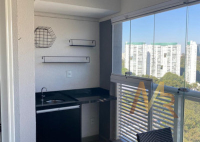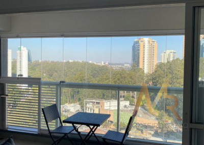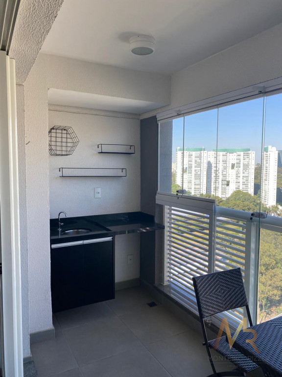 Apartamento de um dormitório no condomínio Parque Way, todo mobiliado, andar alto com linda vista, terraço fechado com vidros, uma vaga de garagem, lazer moderno e completo, ótima localização próximo ao parque Burle Marx e a famosa rua ponte gastronômico do Morumbi, Rua Sussumu Hirata.