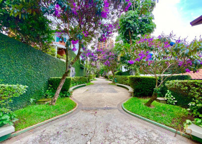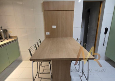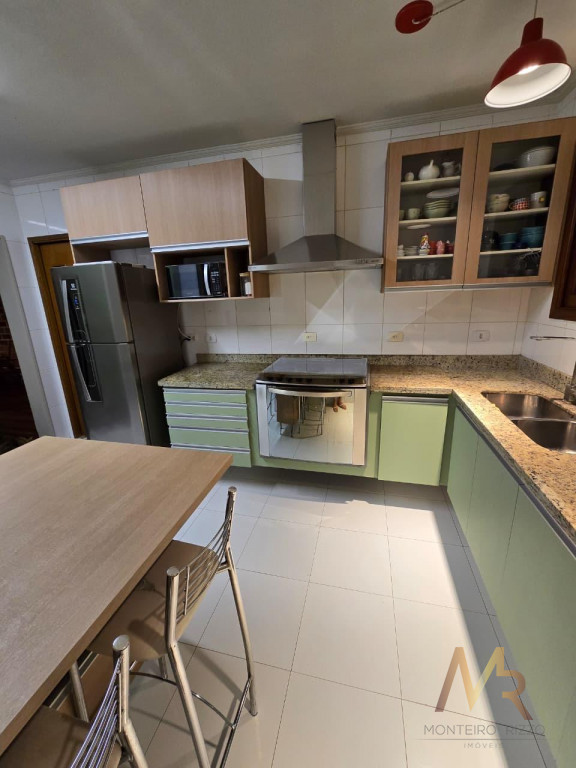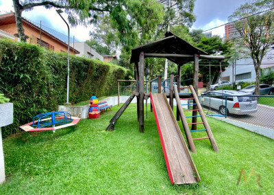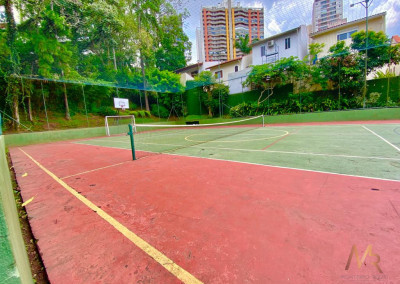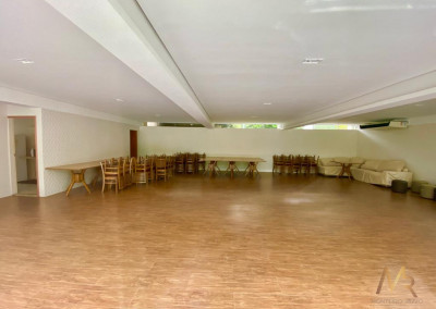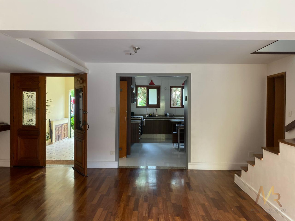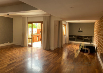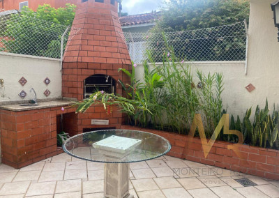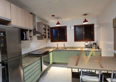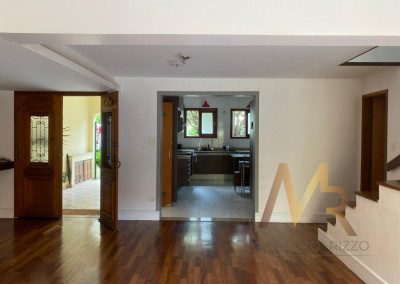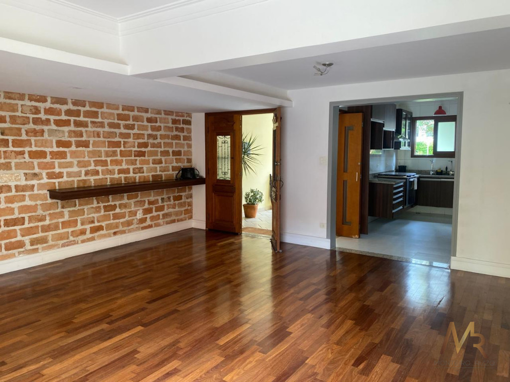No térreo, você vai encontrar uma cozinha ampla, com espaço para fazer aquelas refeições rápidas no dia a dia. Tem também uma lavanderia com dependência de funcionária e banheiro de serviço. A sala é enorme, com espaço para três ambientes, além de um lavabo para maior praticidade. E não para por aí! A área externa tem churrasqueira, perfeita para aquele churrasco com a família e amigos. O piso de madeira de lei em todo o andar térreo dá um toque especial e acolhedor.