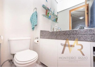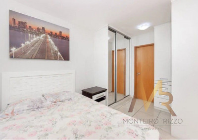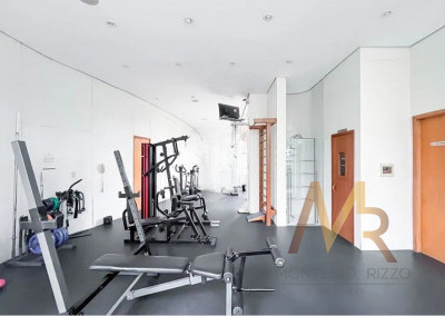 A área comum do condomínio possui piscina, academia de ginástica, brinquedoteca, salão de festa, churrasqueira, sala de massagem, portaria 24 horas e estacionamento coberto.