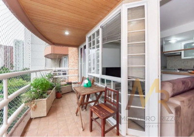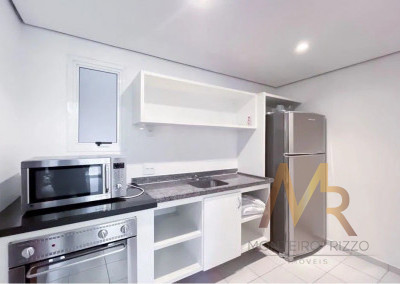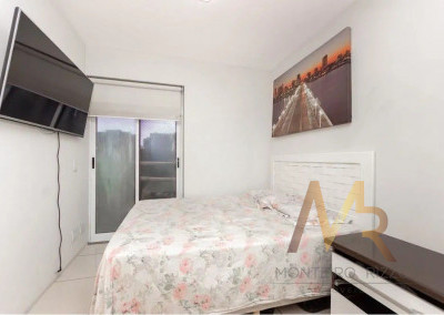 O apartamento mobiliado completo com armários embutido na cozinha e no amplo dormitório, armários nos banheiros, 02 televisões, fogão, máquina de lavar roupas e cama.