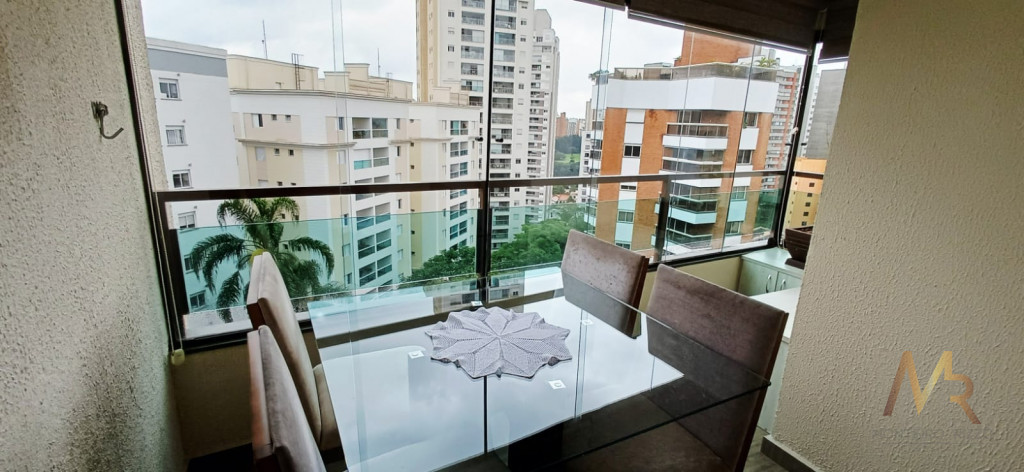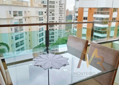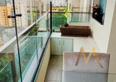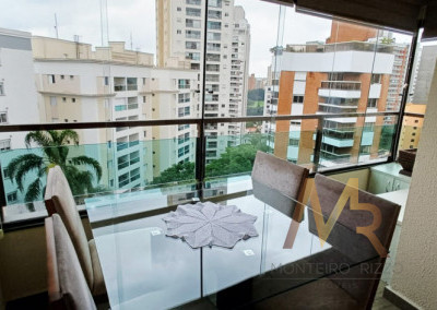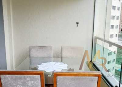 Apartamento repleto de móveis planejados de excelente qualidade e muito bom gosto, varanda com persianas.