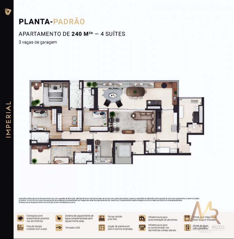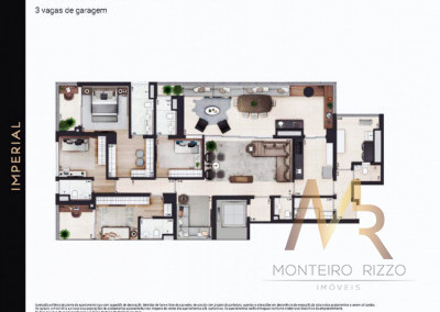 São 04 suítes, ampla varanda gourmet com churrasqueira, 03 vagas de garagem cobertas, além de demais dependências.