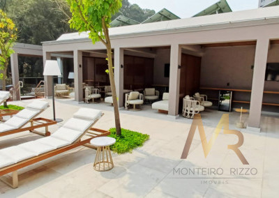 O condomínio oferece infraestrutura de alto padrão, incluindo piscina adulto semiolímpica com borda infinita, piscina infantil, quadra de beach tennis, salão de jogos, espaço gourmet, salão de festas, coworking, brinquedoteca, hidromassagem e playground.