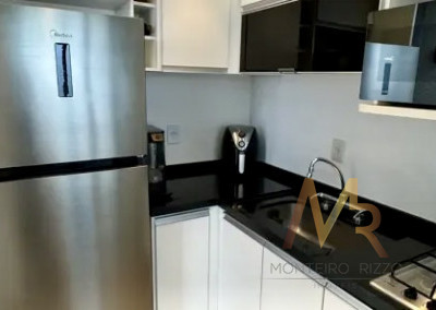 COZINHA E SERVIÇO: Geladeira, micro-ondas, cooktop, air fryer, cafeteira, purificador de água e máquina Lava e Seca Brastemp.