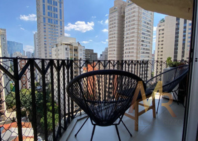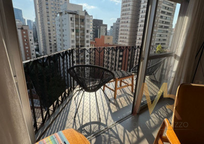 Uma charmosa varanda com vista livre (um verdadeiro achado no Itaim).