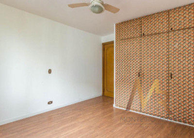 Piso laminado conservado e marcenaria sólida nos dormitórios.