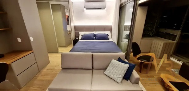 Oportunidade única de morar em um dos condomínios mais desejados da cidade. Este studio não é apenas um imóvel de investimento; foi planejado e equipado com materiais de primeira linha para uso próprio (único dono).