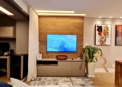 Varanda integrada à sala com fechamento em vidro (caixilhos mantidos para isolamento acústico impecável).