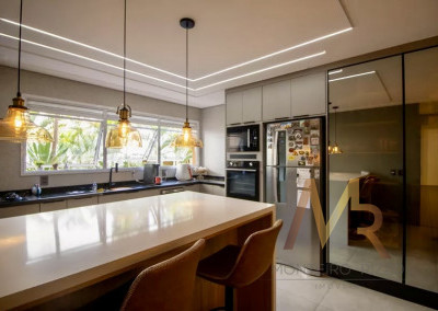 Cozinha moderna, com armários planejado e integrada a sala de jantar ideal para receber.