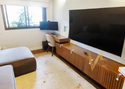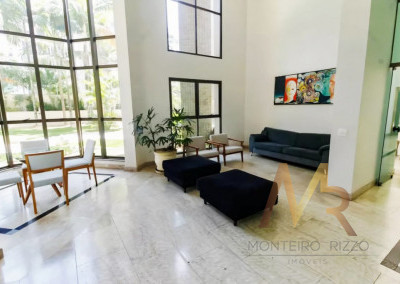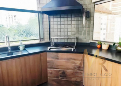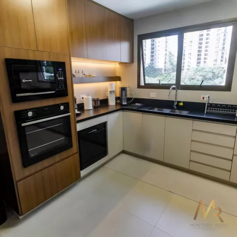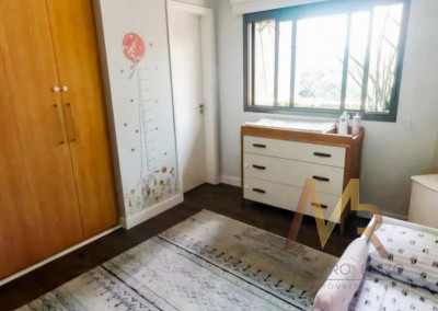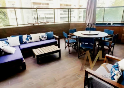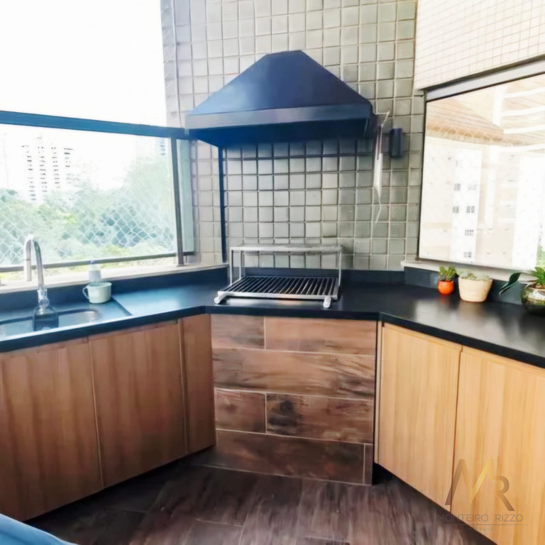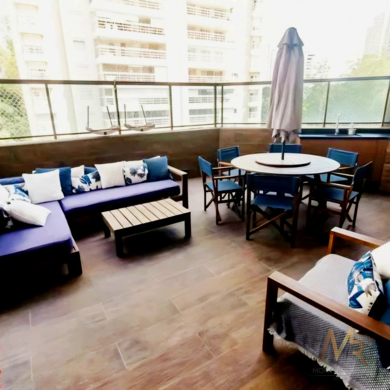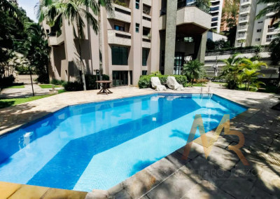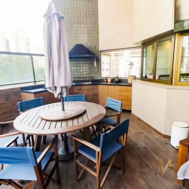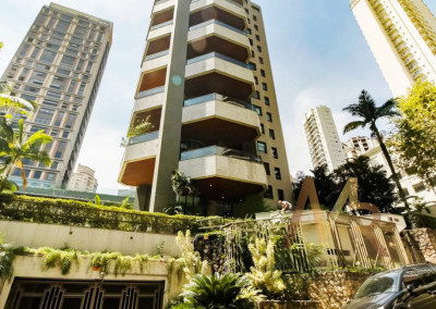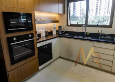 Apartamento penthouse mobiliado para venda no Panamby, 255m², ampla varanda gourmet com churrasqueira, 03 suítes (suíte master com hidromassagem e closet), sala para vários ambientes e lareira, cozinha, área de serviço com banheiro e dependência de empregada, 03 vagas de garagem cobertas e depósito no subsolo.