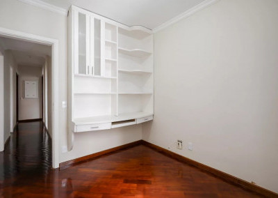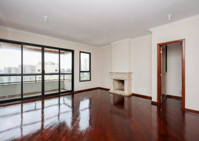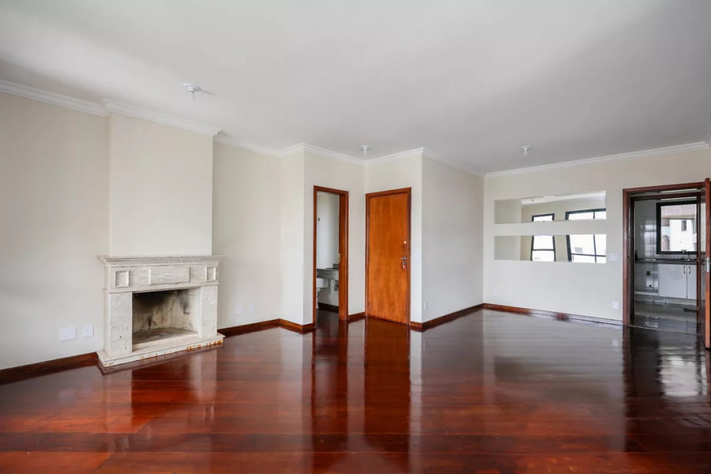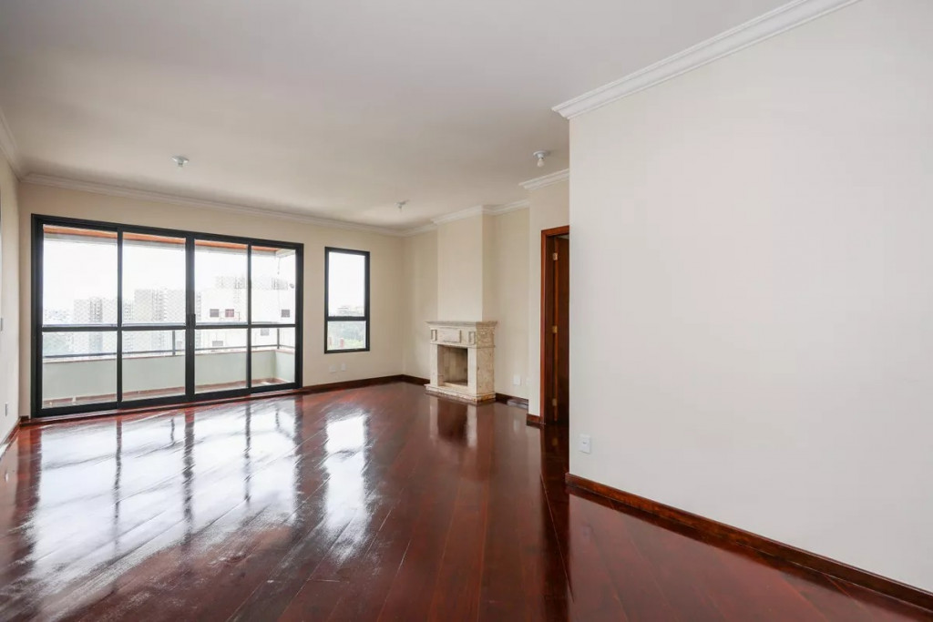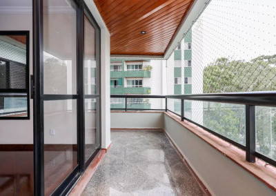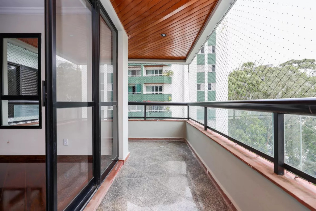 O Imóvel: 4 dormitórios (3 suítes com armários e um escritório ), sala ampla com lareira e piso de madeira nobre. Varanda espaçosa com tela de proteção.