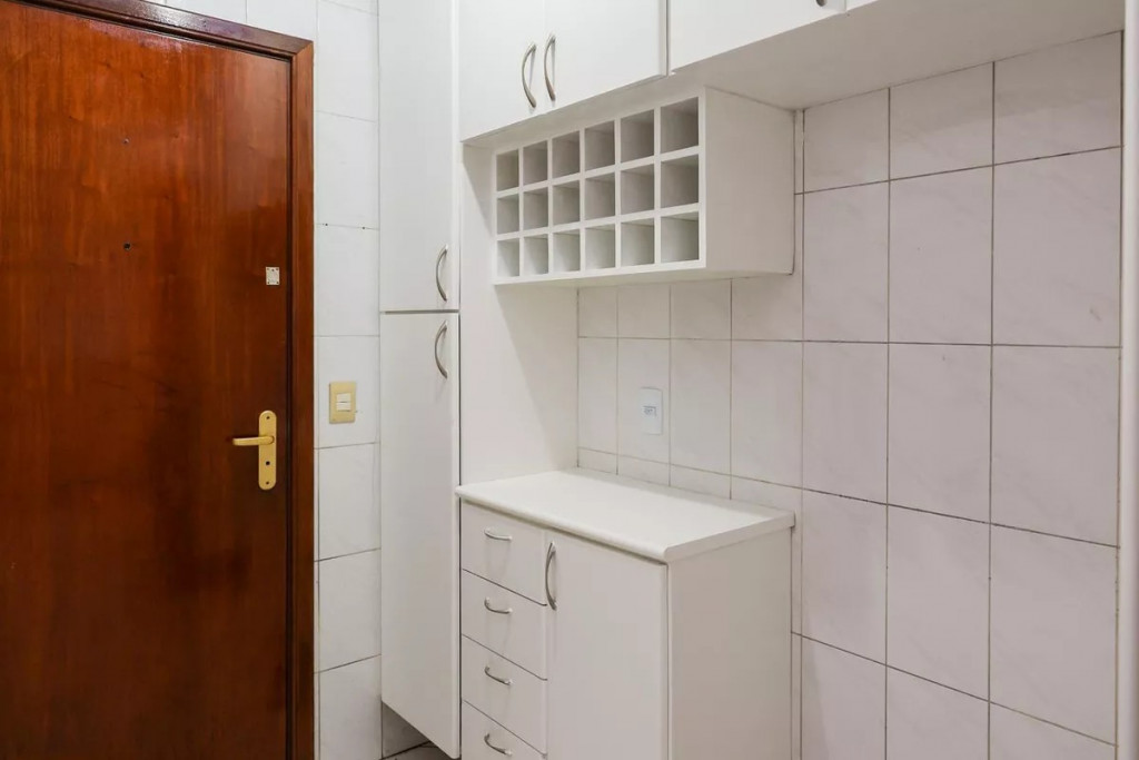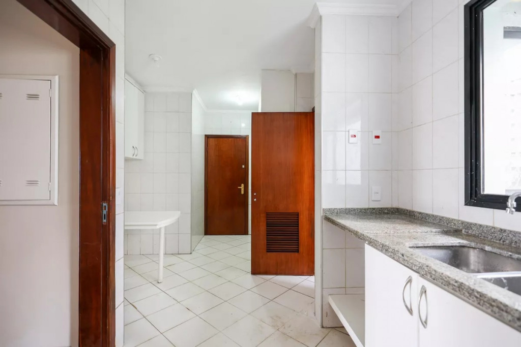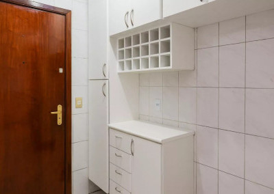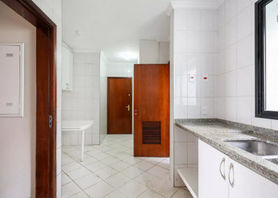 Serviço: Cozinha planejada com ventilação natural, área de serviço completa com dependência de funcionário e banheiro de serviço.