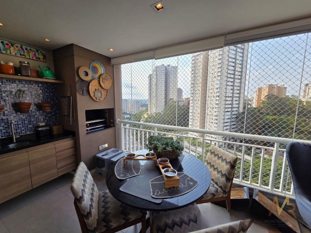 Apartamento na Vila Andrade com uma vista linda, com 3 dormitórios sendo 2 suítes e terraço gourmet. Planta com 128 m² de área privativa, varanda gourmet com churrasqueira e com fechamento em vidro, ampla sala com cozinha integrada, lavanderia, 2 vagas de garagem cobertas, depósito no subsolo.