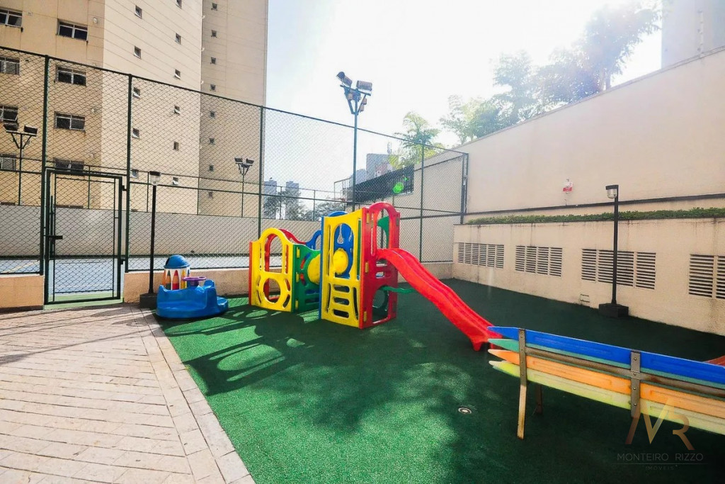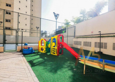 Condomínio com piscina adulto e infantil, academia, sauna, churrasqueira, quadra poliesportiva, área de convivência, salão de festas, brinquedoteca, playground.
