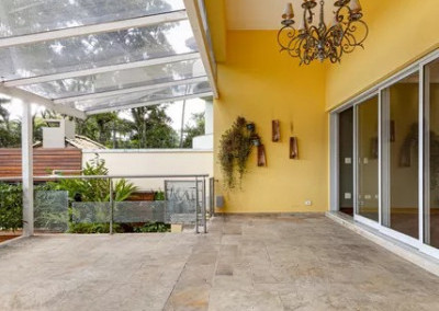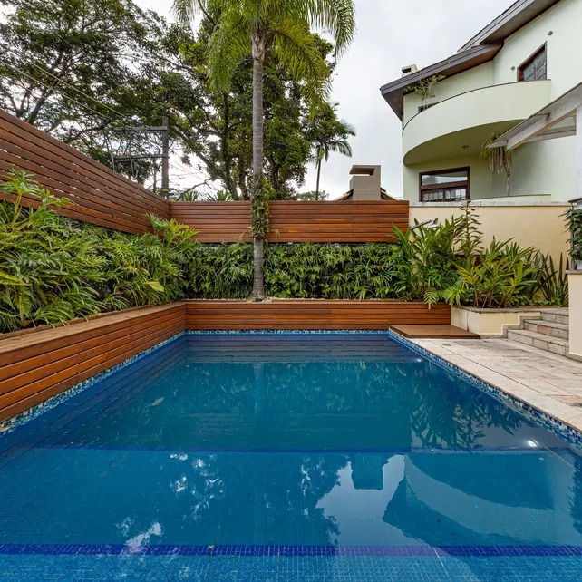 Localizado em um condomínio tranquilo e arborizado, este imóvel oferece segurança 24 horas. Com casas de fachadas individualizadas e amplo espaço entre elas, possui um charmoso hall de entrada com lavabo, um espaçoso escritório com lareira, sala de jantar, sala de almoço, cozinha com despensa, além de um living integrado com a varanda, proporcionando uma vista deslumbrante para o amplo jardim e piscina.